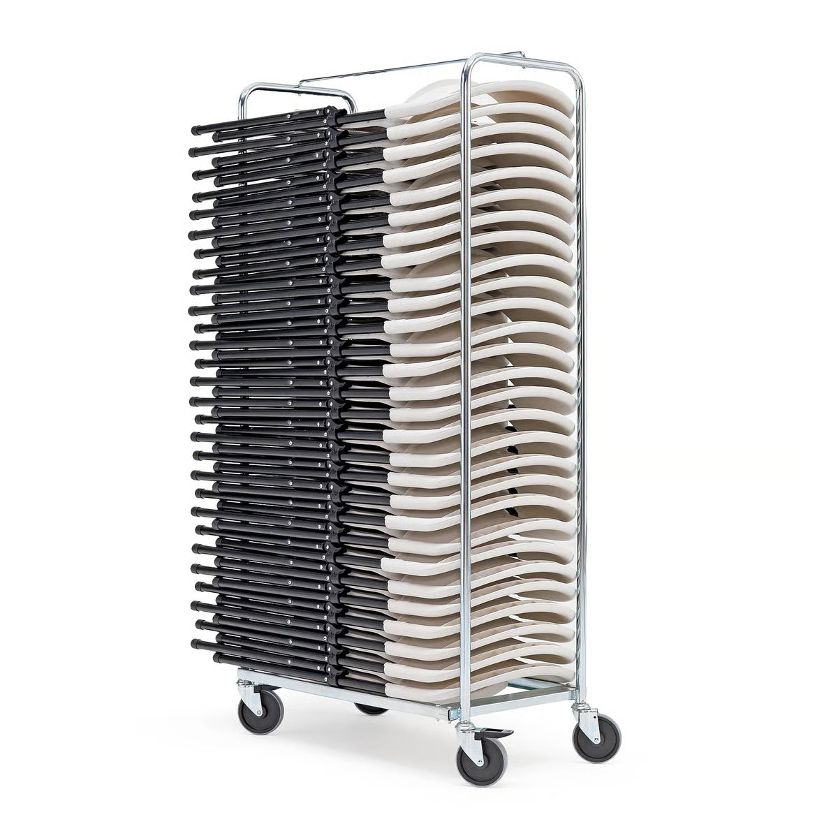 En robust och bekväm stol i hårdplast och stål.